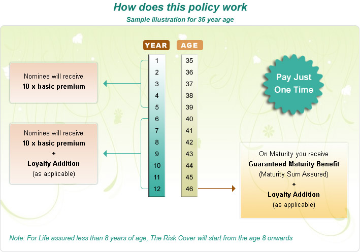 • For life assured below 8 years age, risk cover will start age 8 years onward.