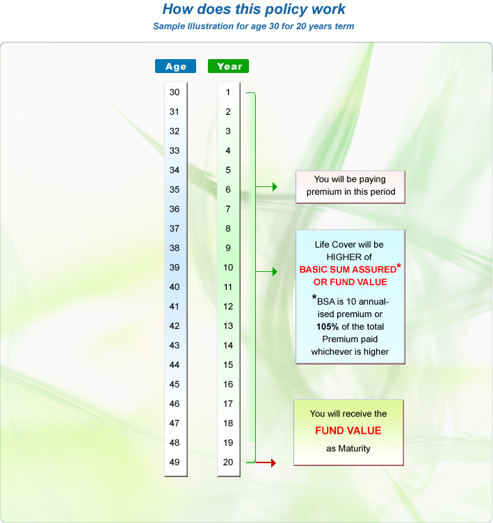 This Plan allows policyholder to decide the amount of premium he/she can pay. There is a option to choose from